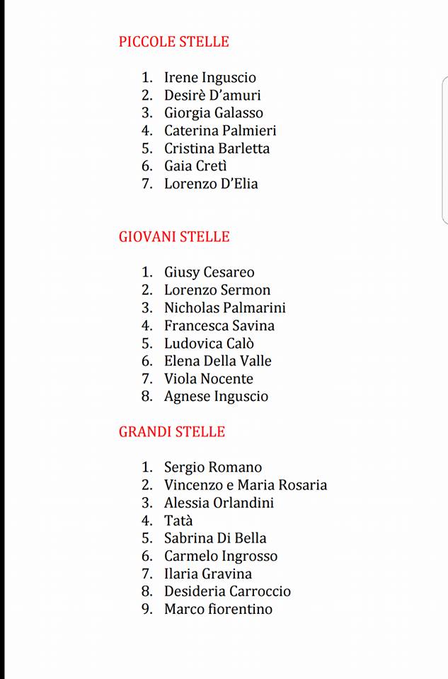 Classifica idoneità d'accesso alla finale di Stelle del Mediterraneo.